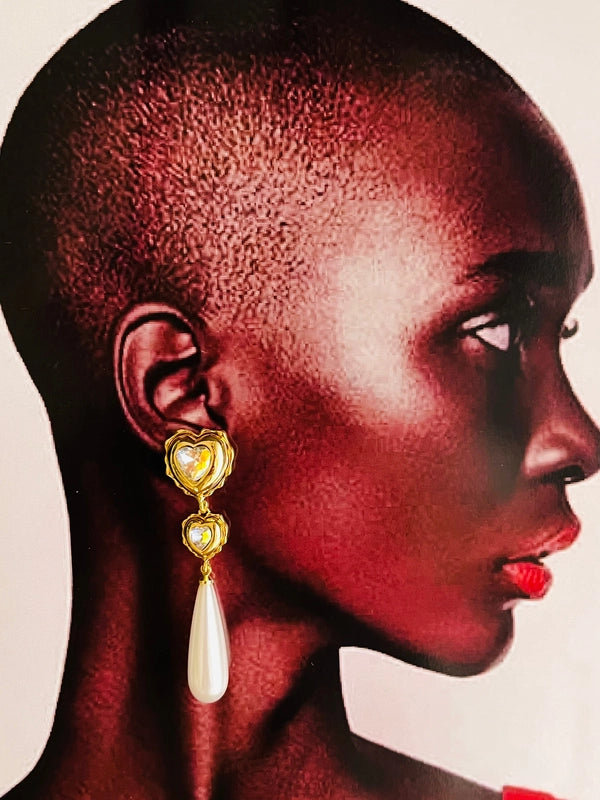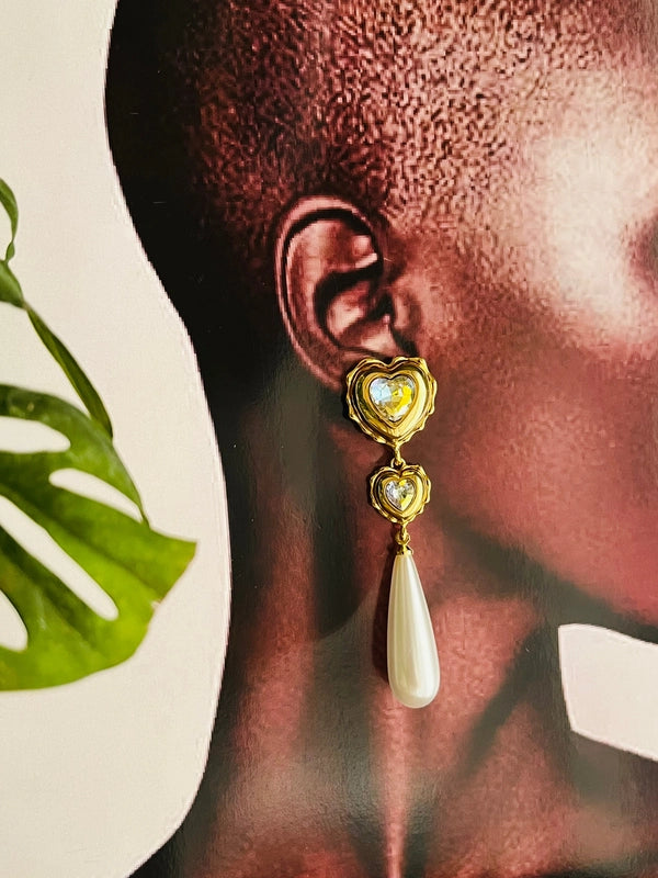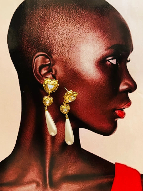 These earrings feature an iridescent dual-tone stone that shimmers beautifully. Framed in 18k gold-tone metal with delicate floral accents, they’re the perfect blend of charm and sophistication for any occasion.