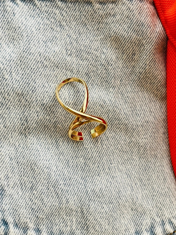 This sculptural ring, with its flowing, continuous ribbon-like loop and graceful crossover, beautifully evokes a sense of infinity, fluidity, and modern elegance. Its form suggests movement and balance — almost like a dance captured in metal.