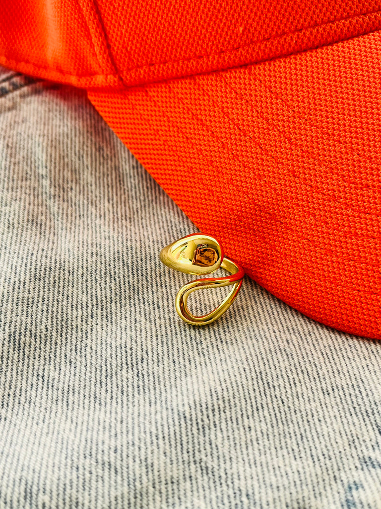 This ring has a beautiful organic, fluid shape — soft curves, negative space, and a mirror-finish gold polish. The ring has a design that splits into two mirrored yet distinct parts, joined together — like two halves forming a whole. Although the open space between them gives it a feeling of balance, duality, and contrast. The unique ring desing leaves room for interpretation: could be yin and yang, masculine and feminine, light and shadow, or just form and fluidity. Pick the meaning that resonates with you and your personal style!